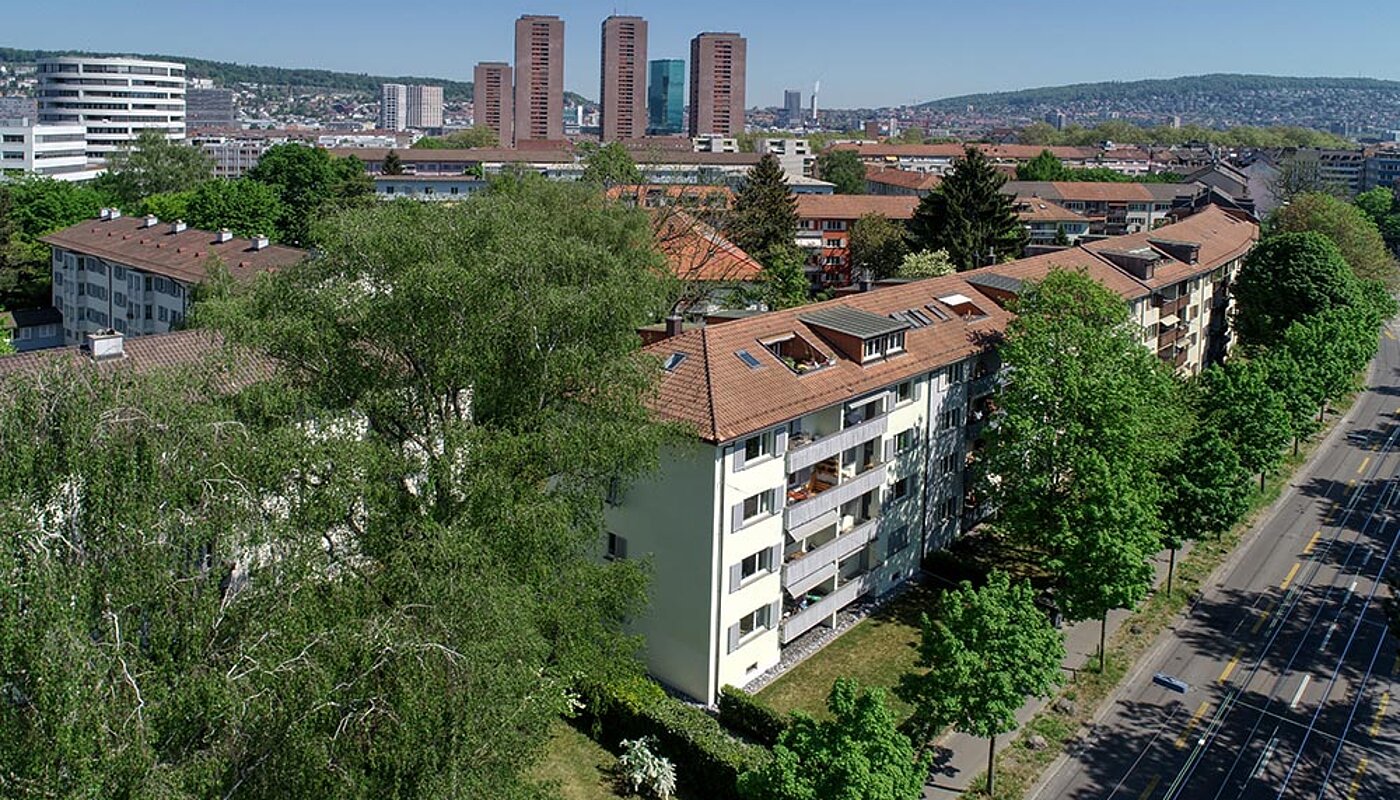 Die Liegenschaft bildet das Ende einer Blockrandüberbauung von 1944. Sie wurde von Zaltana Properties 2012 erworben und 2012 / 2013 totalsaniert. Sie enthält acht 3‑Zimmer‑Wohnungen und eine 1.5‑Zimmer‑Dachloft, alle mit grosszügigen Balkonen und mit praktischen und zweckmässigen Grundrissen. Die Liegenschaft bietet eine schöne Aussicht ins Sihlfeld und in Richtung Üetliberg. Sie ist verkehrstechnisch perfekt gelegen: Eine Tramhaltestelle ist praktisch vor dem Haus, der Albisriederplatz ist ca. 250m entfernt. Von dort aus ist man mit dem Tram in ca. 10 Minuten am HB Zürich oder mit dem Bus in ca. 5 Minuten am Bahnhof Hardbrücke.