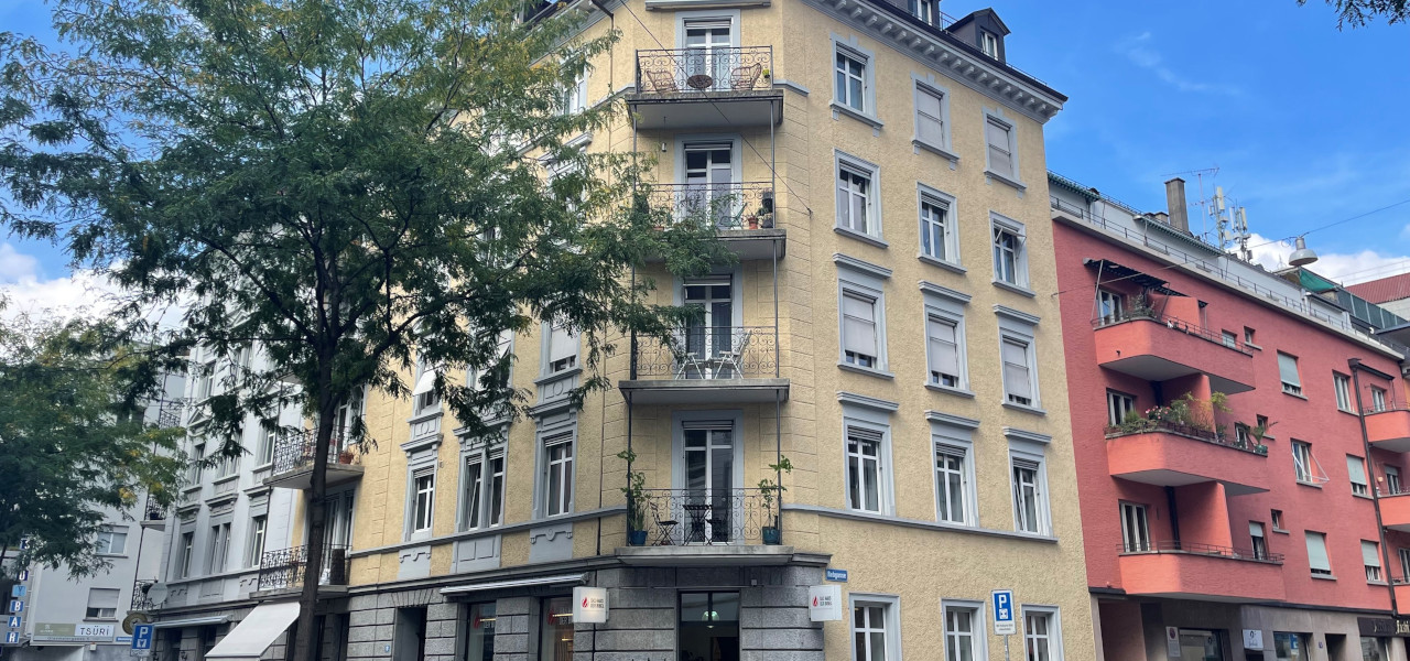 Die Liegenschaft bildet Teil einer historischen Blockrandbebauung von 1894 und orientiert sich Richtung Süden zur Tramhaltestelle Stauffacher hin. Sie wurde 2022 von unserer Schwesterfirma erworben.
